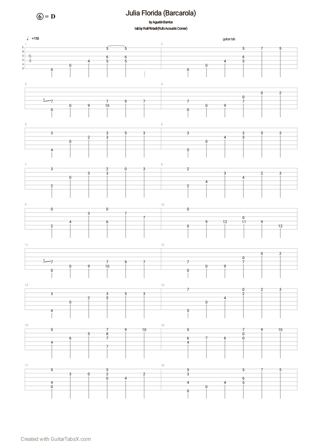 Sampel Instrumental Agustin Barrios - Julia Florida Barcarola Classical Guitar Tabs PDF + Video Lesson (Play Slowly)