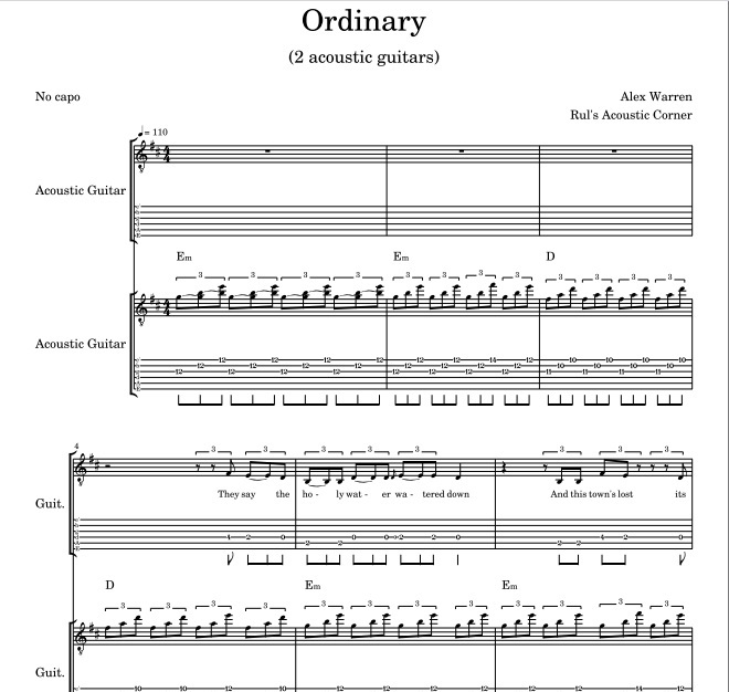 This Sampel Lesson Instrumental Alex Warren - Ordinary (2 Acoustic Guitars) Musical Notes Tabs High Quality PDF + Video Lesson (Play slowly) Download